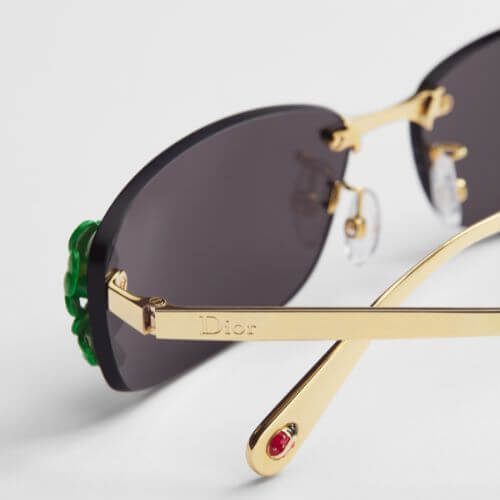 Imagined by Jonathan Anderson for the House, the Dior Clover S1U sunglasses capture the essence of modern aesthetics by breathing new life into one of the House’s iconic lucky symbols. The frameless rectangular shape is highlighted by temples engraved with the Dior signature, clovers and a delicate ladybug on the right. Complemented by gray lenses adorned with green lacquer clovers, the statement sunglasses will bring a couture touch to any look.