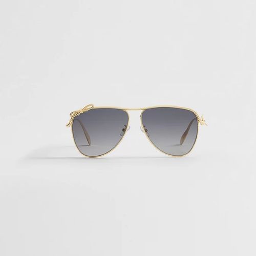 The Dior Bow A1U sunglasses reflect House codes of modern elegance. The gold-finish metal pilot frame is distinguished by a signature bow, subtly placed at the front and on the left temple. Completed by gray gradient lenses, they will lend a contemporary couture touch to any look.